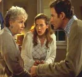The Unsinkable Reynolds in a recent photo, with daughter Carrie Fisher in 2006, with Joan Cusack and Kevin Kline in 1997's In & Out