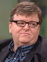 The activist filmmaker during a Chicago press appearance for the film, Sicko's alternate poster and immediately following the round
